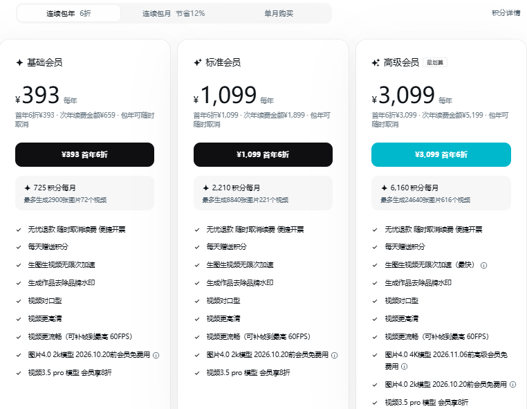 “同时,削减积分、调整优惠,本质上是从低价拉新转向商业变现。叠加Sora关停后高端需求外溢,即梦借此强化定价权,也是市场选择的结果。”